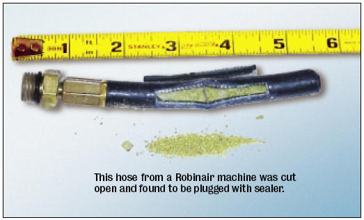 In my examination of over 2,000 returned compressors over the years, I have not noticed a significant problem with sealants.  In fact, less than ten units showed congealed sealant at all.  Upon closer examination, in only a few cases could the congealed sealant be determined to be the cause of the failure.  And this was no doubt due to the technician failing to replace the dryer and leaving moisture in the system during servicing.